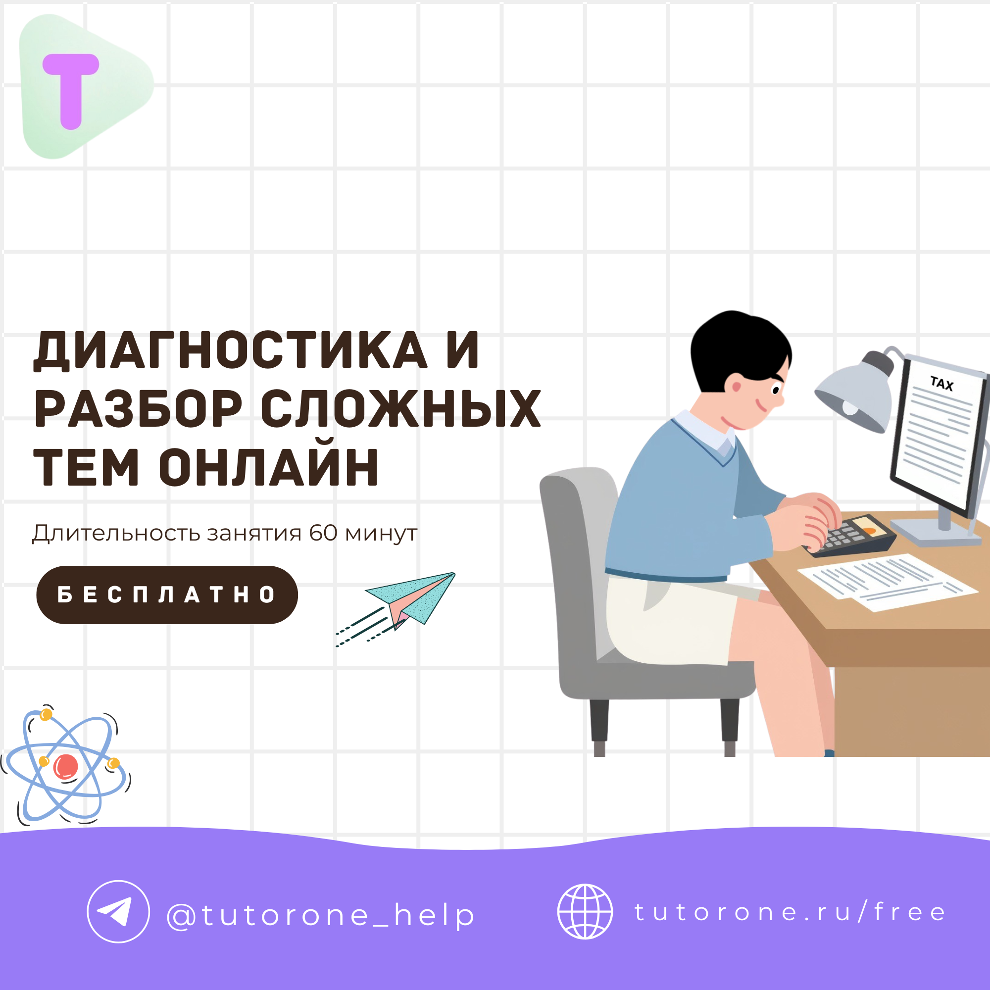 Учебный центр TutorONE реализует социальную образовательную инициативу, в рамках которой обучающиеся 1–11 классов могут принять участие в бесплатном индивидуальном онлайн-занятии (60 минут) по школьным предметам.